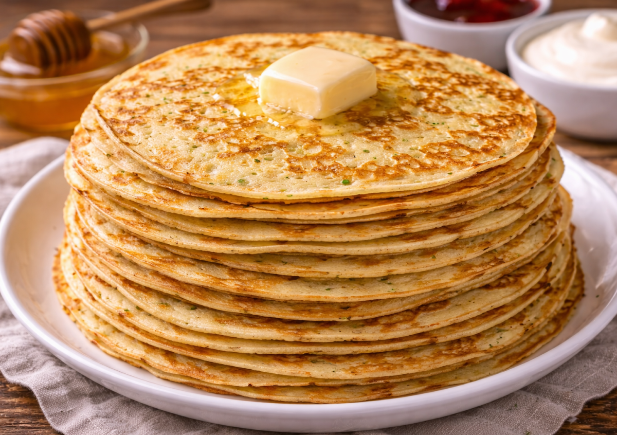 Благодаря творогу тесто получается нежным и чуть сливочным на вкус, а сами блинчики — мягкие, эластичные и не рвутся. Отлично подойдут и на завтрак, и на перекус, и даже как основа для фаршированных блинов.