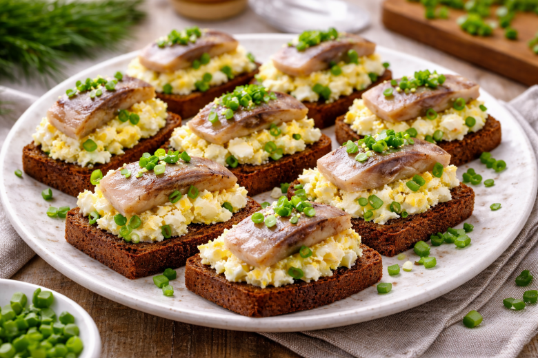Гренки с селедочкой и яйцом — простая, сытная и по-настоящему народная закуска, которая выручит и к семейному ужину, и к праздничному столу. Хрустящий черный хлеб, нежный яичный салат и соленая селедка — беспроигрышное сочетание, знакомое с детства. Готовится быстро, съедается еще быстрее.