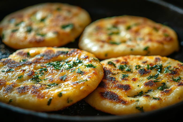 Получается обалденная вкуснятина: золотистые, с хрустящей корочкой снаружи и нежные, ароматные внутри лепешки с ярким вкусом сыра и свежей зелени.