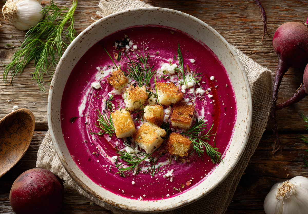 Свекла может раскрыться совсем по-новому, если приготовить из нее нежный крем-суп. Он получается ярким, густым и с мягким сливочным вкусом — выглядит эффектно, а готовится без лишних хлопот. Отличный вариант, когда хочется простого, но «ресторанного» блюда дома.