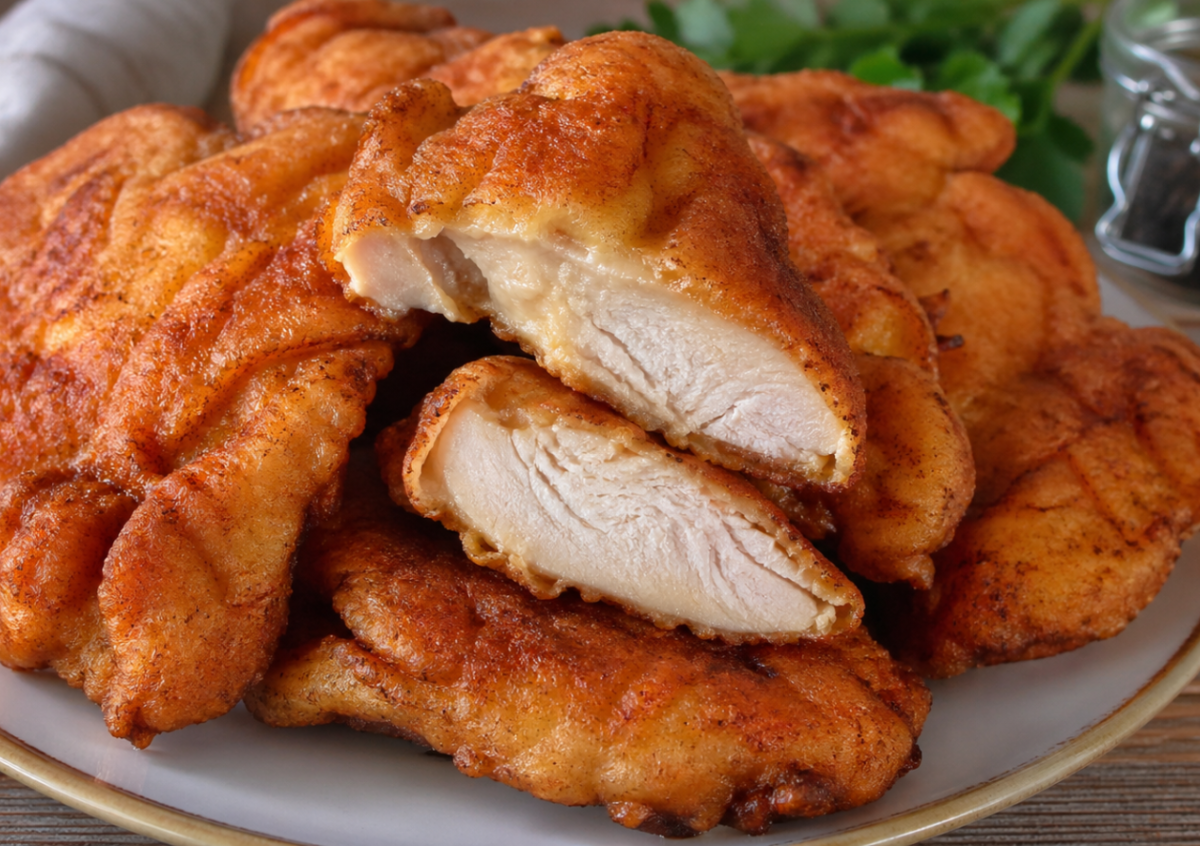 Надоела обычная тушёная курица и гуляши — беру филе, делаю простой кляр и жарю на сковороде. Без сложных маринадов, а результат совсем другой: снаружи румяная хрустящая корочка, внутри — сочное мягкое мясо.