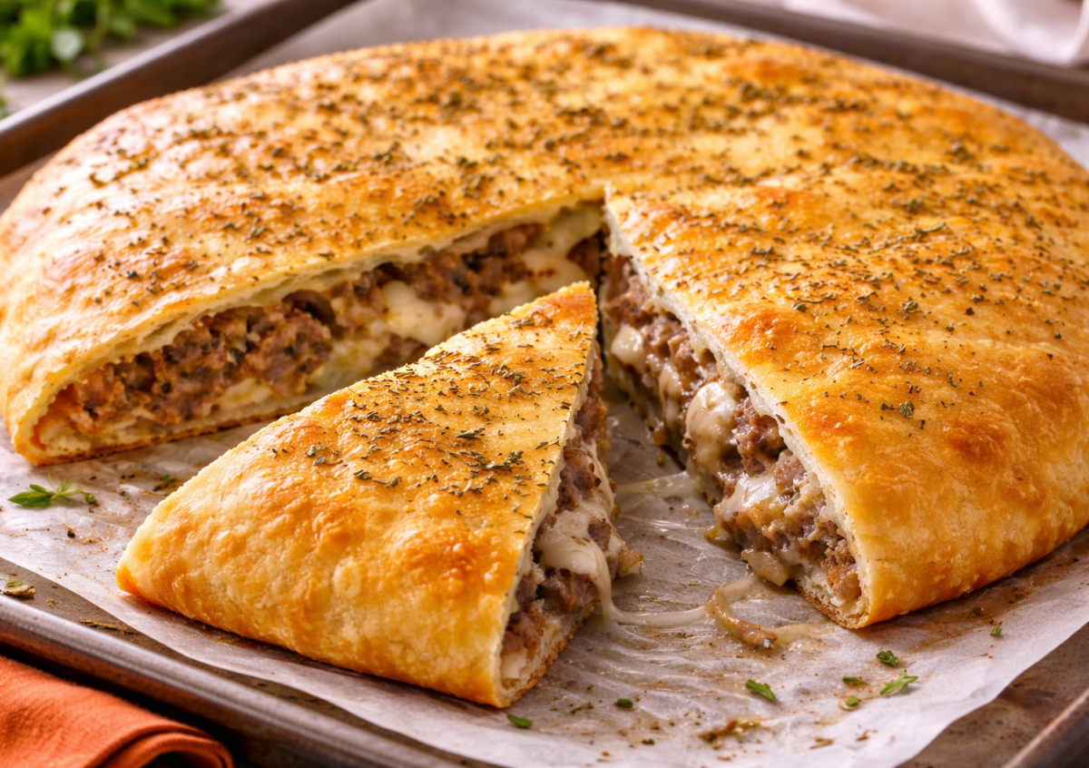 Если привычные пироги уже надоели, этот итальянский пирог приятно удивит. Тонкое тесто, ароматная мясная начинка и тянущийся сыр делают его похожим на что-то среднее между пирогом и пиццей.