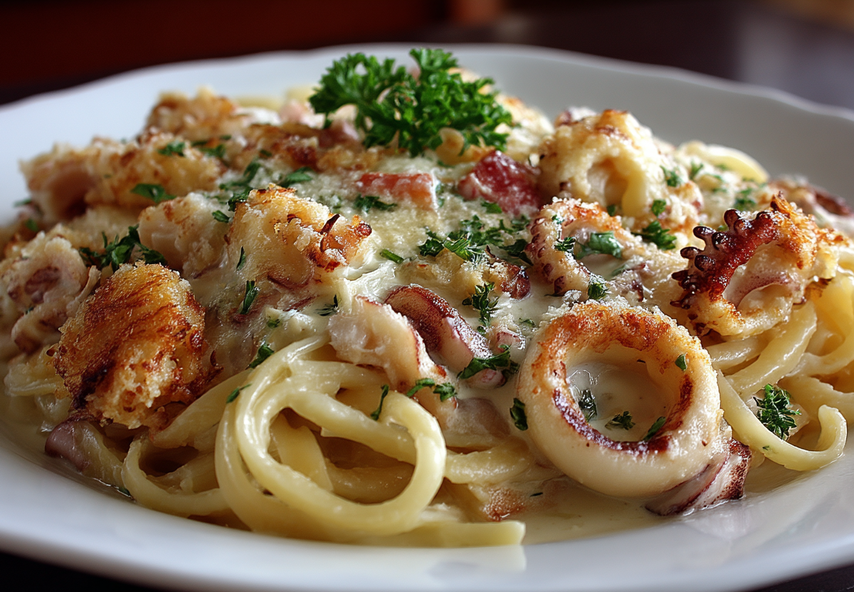 Это гениально простое и невероятно вкусное блюдо, идеальное для быстрого ужина. Получается обалденная вкуснятина: нежные кольца кальмара в густом, сливочном соусе с лёгкой кислинкой, а сверху — расплавленная сырная корочка, которая делает каждый кусочек тающим во рту.