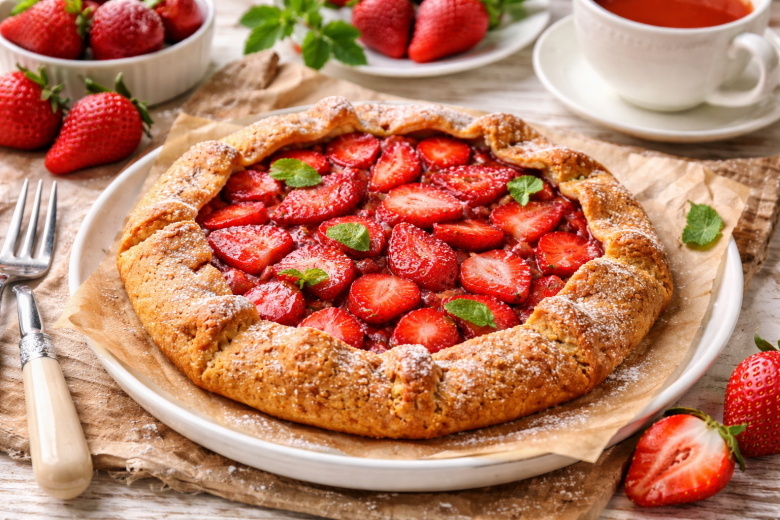 Как готовить: творог разомните вилкой до однородности. Добавьте яйцо, рисовую муку и 1 мерную ложку подсластителя, замесите мягкое тесто — оно может слегка липнуть, это нормально. Переложите тесто на лист пергамента и аккуратно сформируйте круглую лепешку толщиной около 0,5 см, присыпьте ее крахмалом. Клубнику нарежьте ломтиками, смешайте с оставшимся подсластителем и выложите в центр, оставляя по краям примерно 3 см свободного теста. Края заверните внутрь, формируя открытую галету. Выпекайте в духовке, разогретой до 200 °C, 20–25 минут до легкой румяной корочки. Дайте немного остыть — и можно подавать.
