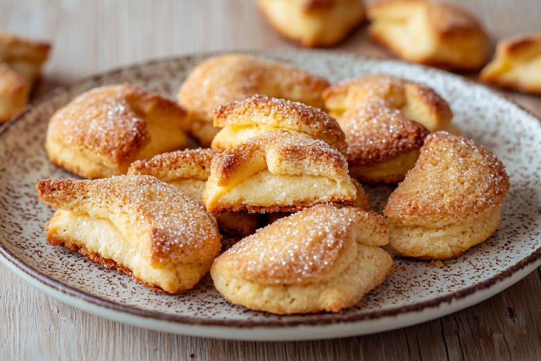Получается обалденная вкуснятина: золотистые, хрустящие печенья-«ушки» с сахарной корочкой, а внутри — мягкая, творожная серединка с ароматом ванили, которая буквально тает во рту.
