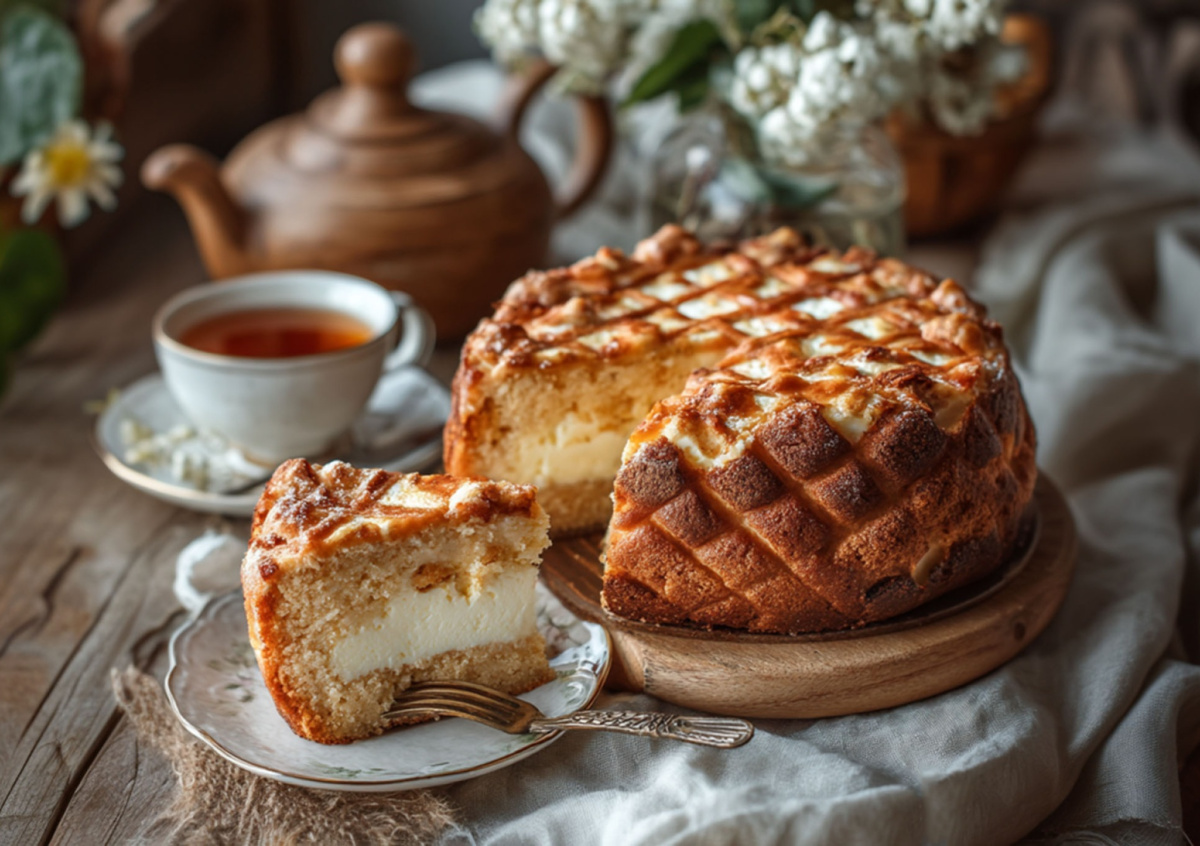 Взбейте яйца с сахаром, добавьте молоко и масло. Всыпьте муку с разрыхлителем, доведите до однородности и вылейте тесто в форму. Творог смешайте с яйцом, сахаром, ванилью и крахмалом, переложите в пакет или мешок и выдавите сверху узором «крест-накрест». Выпекайте 35–40 минут при 180 °C. Подавайте остывшим — пирог нежный, воздушный, и сразу хочется попробовать кусочек!