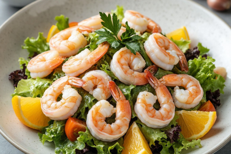 После сытных праздничных салатов так хочется свежести, легкости и чистого морского вкуса. «Иней» — это именно то блюдо, которое освежит ваше меню: нежные креветки и упругий кальмар создают легкую основу, а сочные цитрусовые ноты и хрустящий салат добавляют ощущение прохлады и чистоты. Этот салат как глоток свежего воздуха: элегантный, быстрый в приготовлении и идеально подходящий для того, чтобы завершить череду плотных застолий.