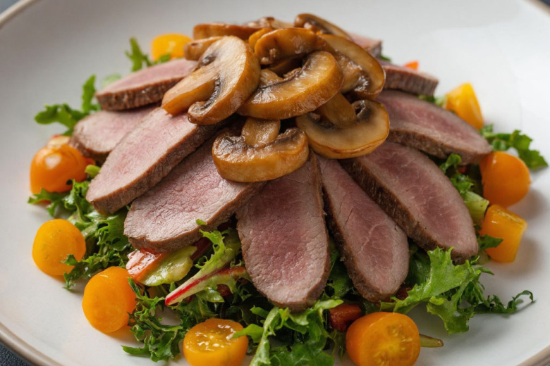 После обильных праздничных застолий с многосоставными салатами часто хочется чего-то более лаконичного, но при этом такого же сытного и благородного по вкусу. Такой альтернативой станет «Генеральский» салат. В нем нет десятка ингредиентов, а основа — отварной говяжий язык и маринованные опята — создает идеальный дуэт: нежное мясо с выразительной текстурой и грибы с пикантной кислинкой. Это тот самый случай, когда минимальные усилия дают максимально насыщенный и взрослый вкус, превращая салат в полноценный легкий ужин.