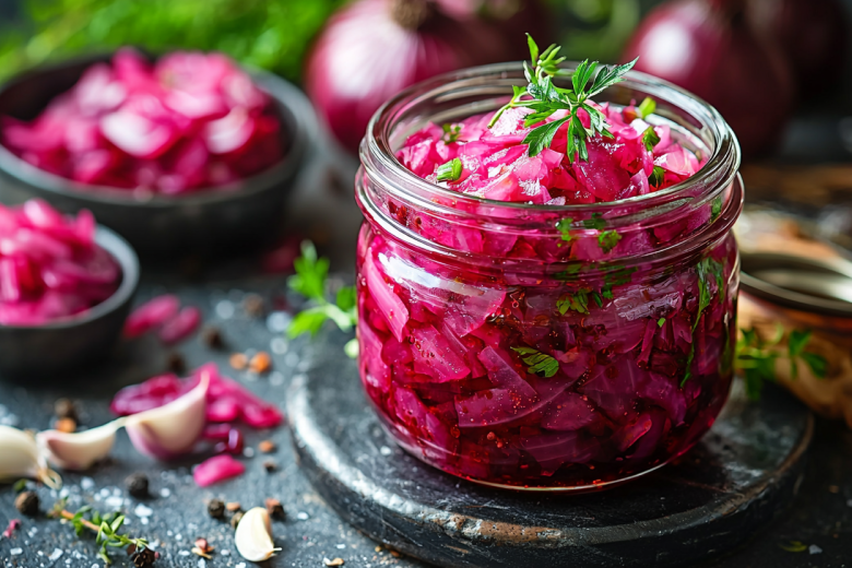 Этот рецепт кардинально меняет лук! После маринования он теряет всю свою резкость и горечь, но сохраняет приятную остроту и хрусткость. Свекла придает ему красивый розовый оттенок и легкую сладость.