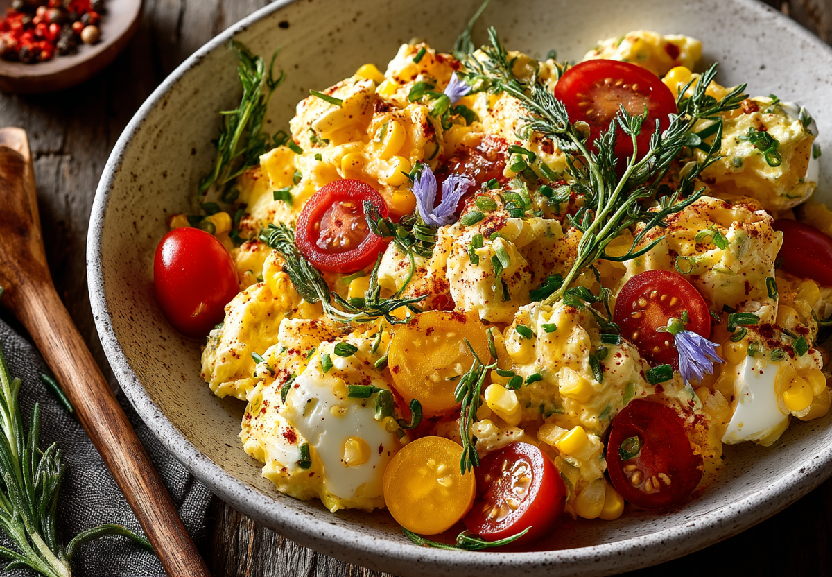 В любом застолье есть блюдо, которое исчезает раньше остальных. У меня это — яичный салат с сыром, кукурузой и черри. Его не забивают ни оливье, ни селедка под шубой. Легкий, свежий, с нежной йогуртовой заправкой и ароматом чеснока. Попробуйте — поймете.