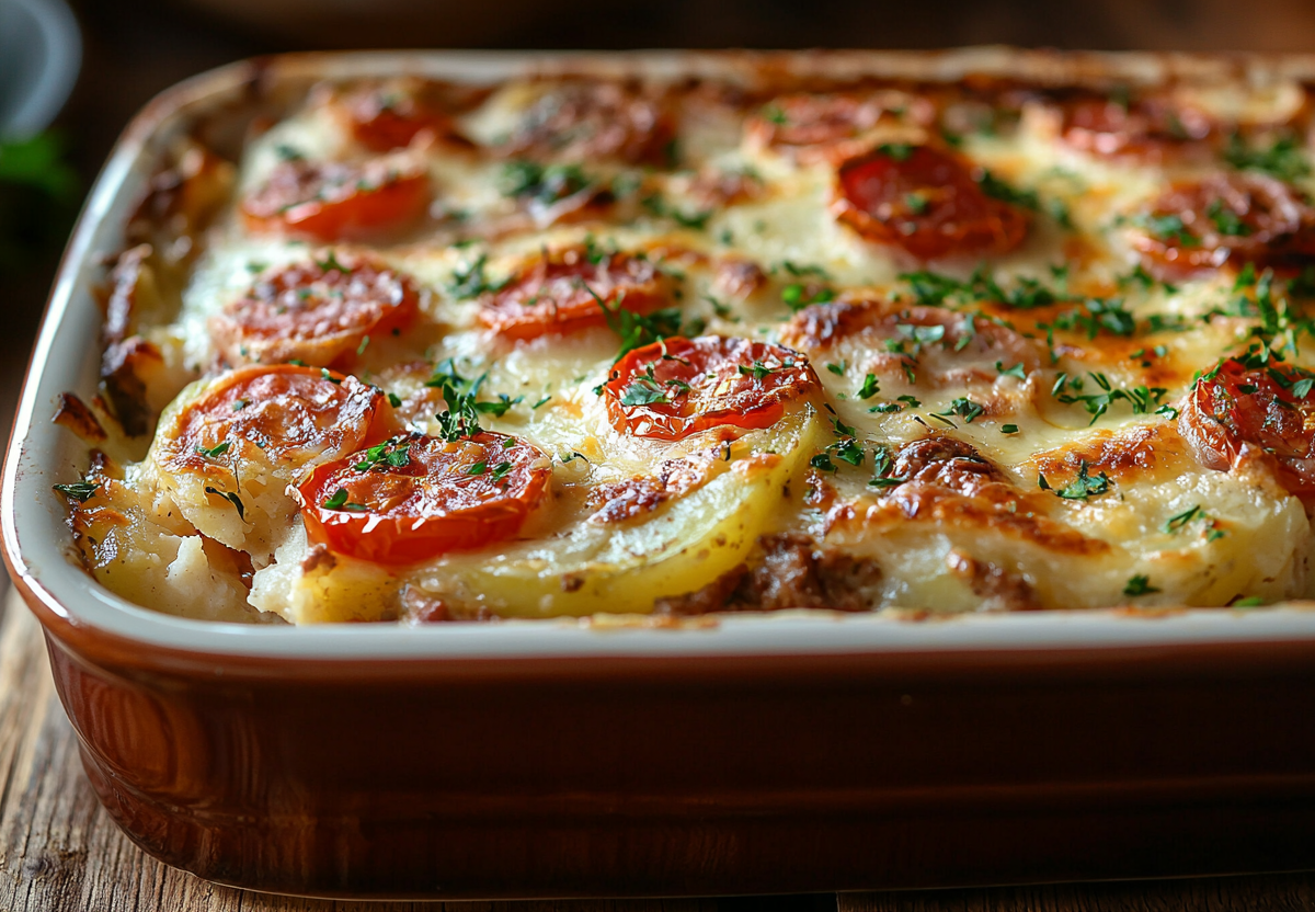 Вкус получается бархатистым и насыщенным: сочная свинина, нежный картофель, сладковатые овощи в сливочном соусе с травами создают потрясающую гармонию. Это блюдо — воплощение домашнего уюта.