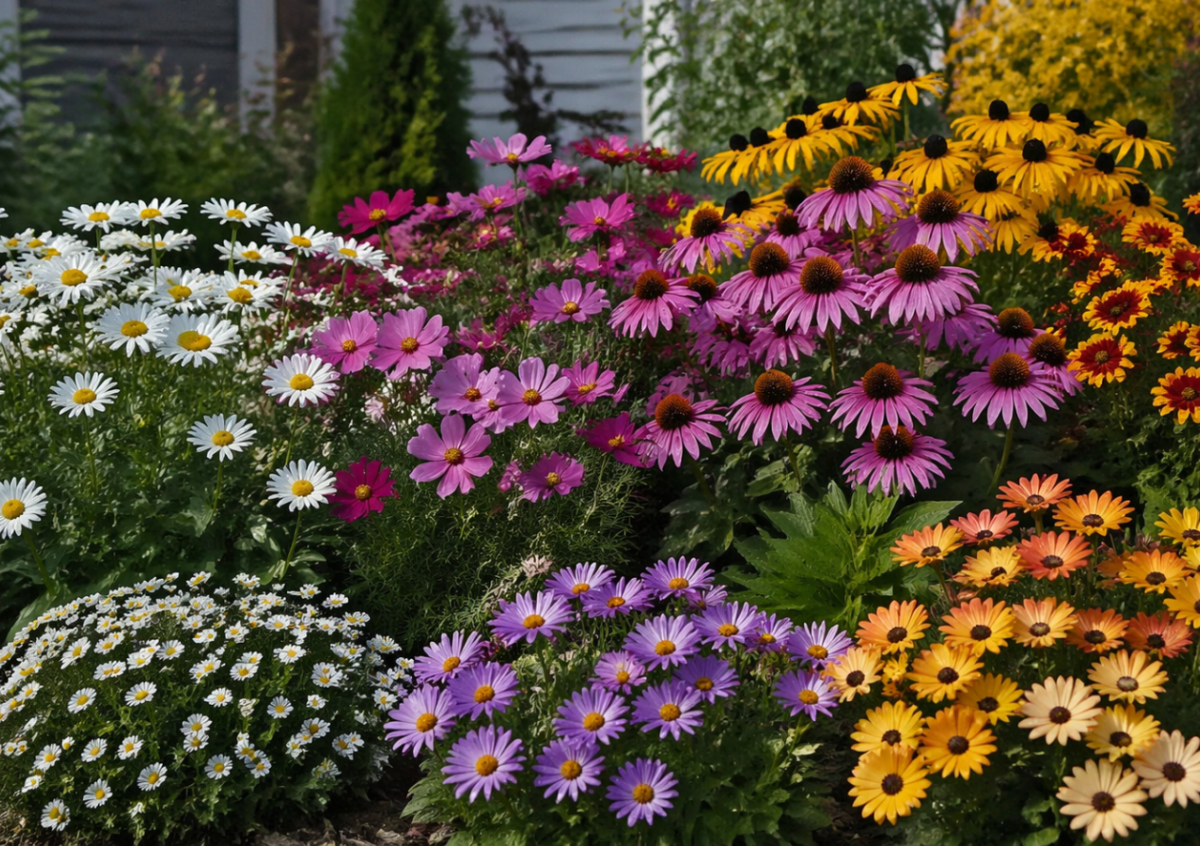 В результате грамотного сочетания таких «ромашковых» цветов можно создать клумбу, которая будет цвести с начала лета и до осени, постоянно меняя оттенки и оставаясь декоративной весь сезон.
