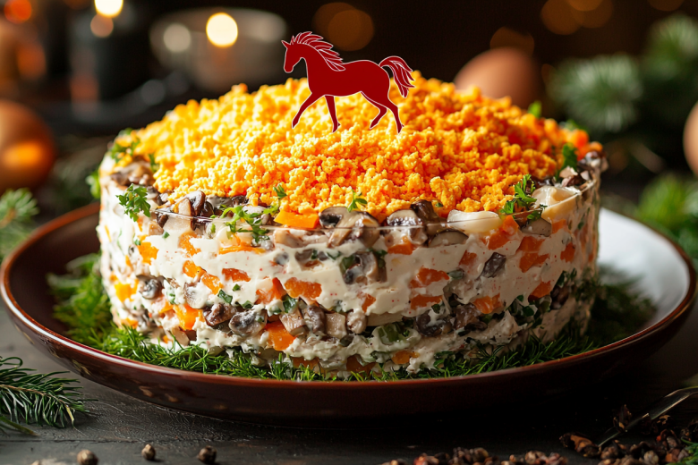 Встречайте 2026 год с тематическим салатом «Огненная лошадь», который станет главным украшением праздничного стола и вашим талисманом на удачу.