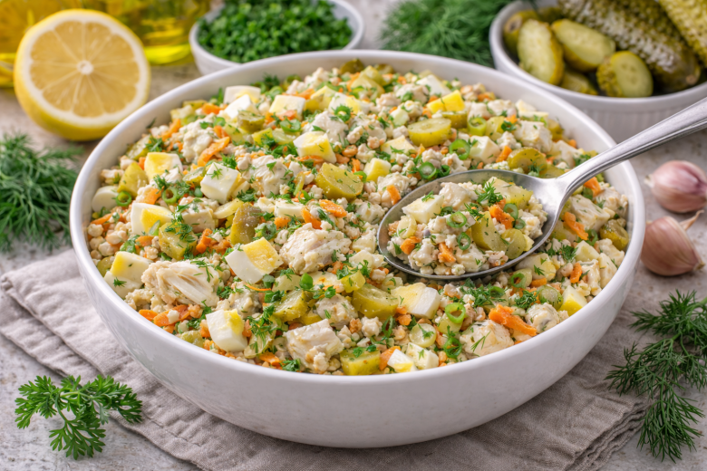 Делаю этот салат уже несколько дней подряд — и он не надоедает. Нежный, сочный, с лёгкой кислинкой и чесночным ароматом — оторваться просто невозможно. В следующий раз точно буду готовить сразу большую миску. Этот салат-закуска получается очень удачным: рыба — мягкая, овощи — ароматные, заправка — идеально сбалансированная. Подойдёт для будней, праздников и неожиданных гостей.