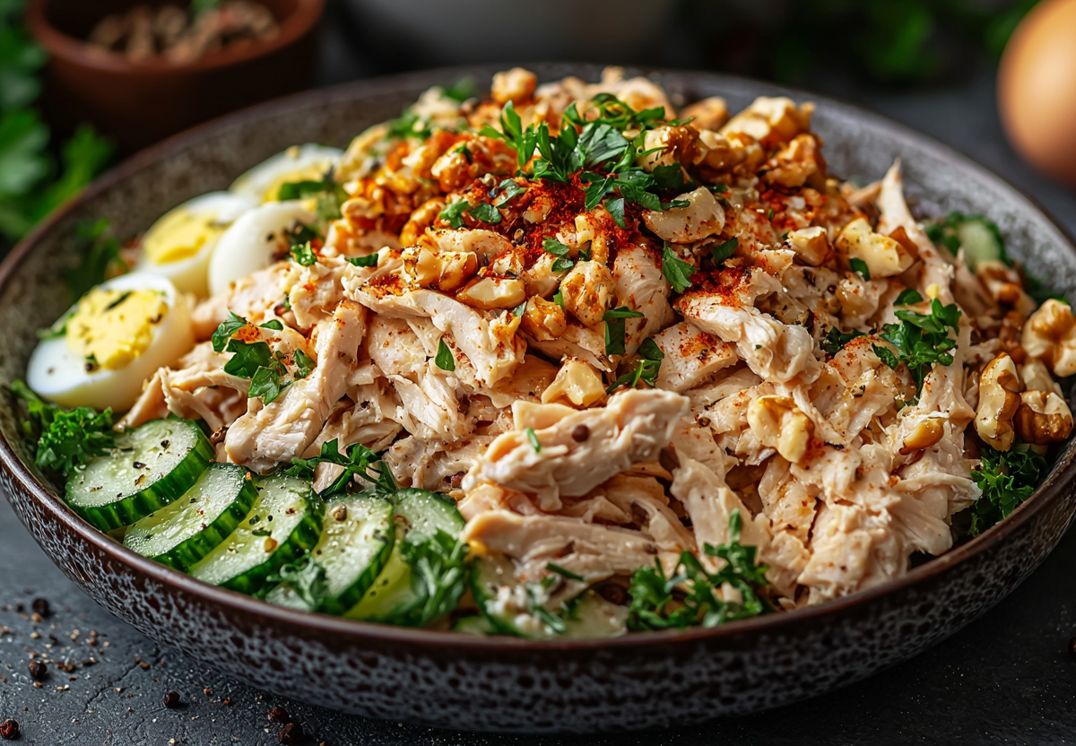 Салат «Вместо оливье» — вкусная замена классике! Неизбитое сочетание! Этот легкий и сытный салат станет приятным разнообразием для праздничного меню. Нежная курица, ароматные грибы и хрустящие огурцы создают идеальный баланс вкусов.