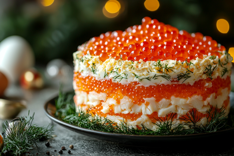 Салат «Жемчужина» с морским коктейлем и икорной шапкой — мой хит к любому празднику: готовится быстро и выглядит роскошно