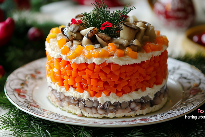 Классика — это вечно, но даже самому любимому блюду иногда хочется придать новое звучание. «Лисья шубка» — это дерзкий и модный пересмотр всенародной селедки под шубой. Секрет — в замене традиционной свеклы на маринованные грибы, которые придают салату изысканную пикантность и легкую лесную нотку. Этот вариант получается менее сладким, более интересным по текстуре и очень нарядным. Рыжие слои моркови и картофеля действительно напоминают окрас лисы, что делает салат стильным и символичным украшением стола. Для Нового, 2026 года, который пройдет под знаком Зеленой Лошади, такой обновленный рецепт — идеальный способ почтить символ года и удивить гостей изящной кулинарной интерпретацией.