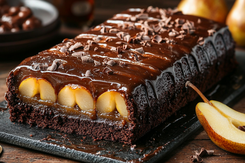 Приготовьте шоколадный кекс с целыми грушами — изумительный десерт, который удивит красотой среза. Рецепт прост — без причуд и лишних трат!