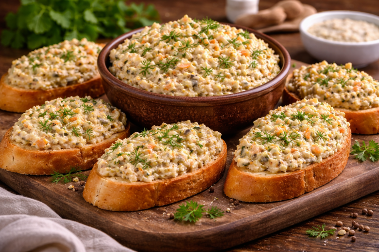 Эта намазка исчезает со стола первой — нежная, ароматная и с лёгкой пикантной ноткой. Готовится за считанные минуты, а вкус — как у закуски из дорогого кафе. Идеально подходит и к завтраку, и к праздничному столу. Нежная паста из шпрот, яиц, моркови и плавленого сырка получается насыщенной, сочной и очень гармоничной. Маринованный лук добавляет яркость, а укроп — свежий аромат.