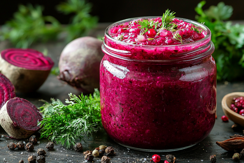 Смешиваю хрен со свёклой и чесноком — получается та самая "русская аджика", без которой зима не зима. Это гениально простое и невероятно вкусное блюдо, идеальное для мясных и рыбных блюд, пельменей или просто намазанное на чёрный хлеб. Его необычность в том, что из доступных корнеплодов получается ядрёная, ароматная приправа с насыщенным цветом и ярким вкусом, которая хранится всю зиму и всегда выручает. Получается обалденная вкуснятина: густая, бархатистая масса с мощным хреновым духом, сладковатой свекольной ноткой и пикантной остротой чеснока. Она пробуждает аппетит, согревает в холода и делает привычные блюда праздничными.