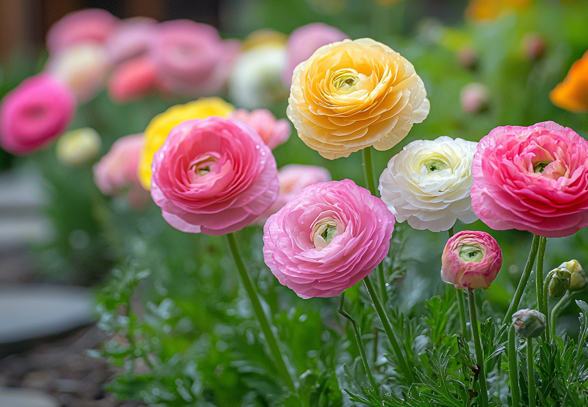 Ранункулюс — его густомахровые бутоны диаметром до 10 см с атласными лепестками напоминают миниатюрные розы. При этом он не боится болезней, может расти как на солнце, так и в тени, не требует частых подкормок и стоит в вазе до двух недель.