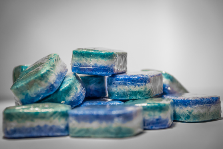 Кроме того, средство помогает очистить сантехнику. Если опустить таблетку в унитаз и дать ей раствориться, через час налет станет заметно мягче и легко удалится щеткой. Также ее можно использовать для очистки стиральной машины: положите таблетку в отсек для порошка и запустите горячий цикл стирки без белья.