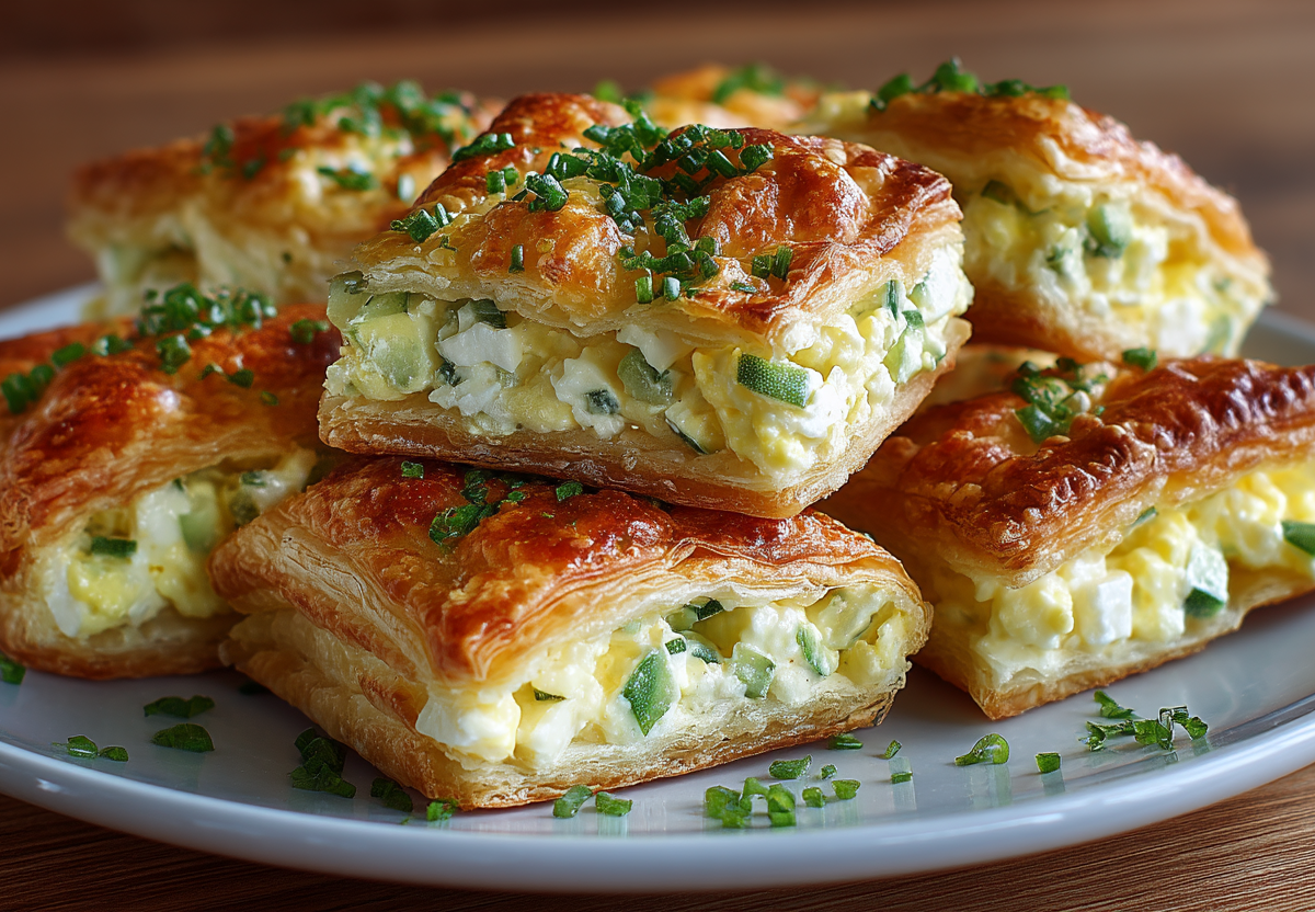 Беру слоеное тесто, вареные яйца и маринованные огурцы — и готовлю хрустящие слойки с яичным салатом, которые исчезают быстрее, чем я успеваю их достать из духовки.