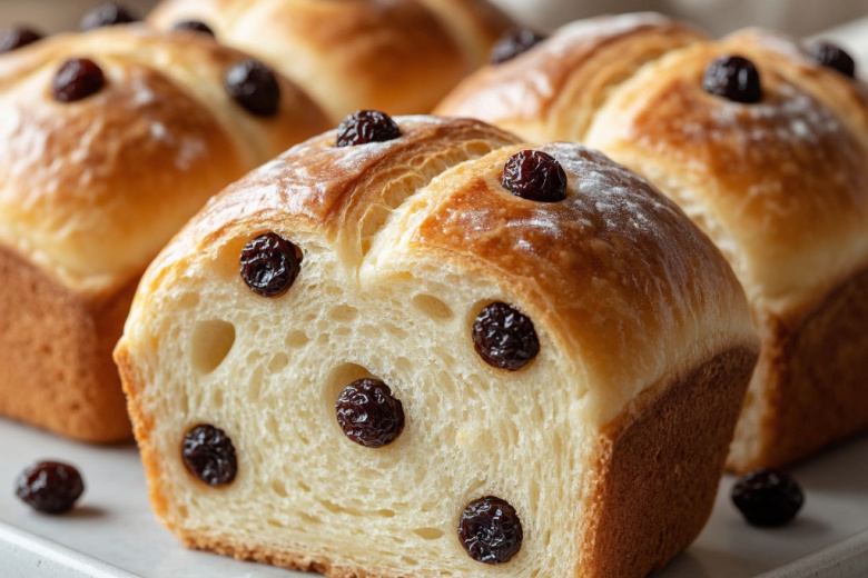Те самые сайки с изюмом из детства: мягкие, слоистые, с янтарными изюминками внутри — идеальная выпечка к чаю