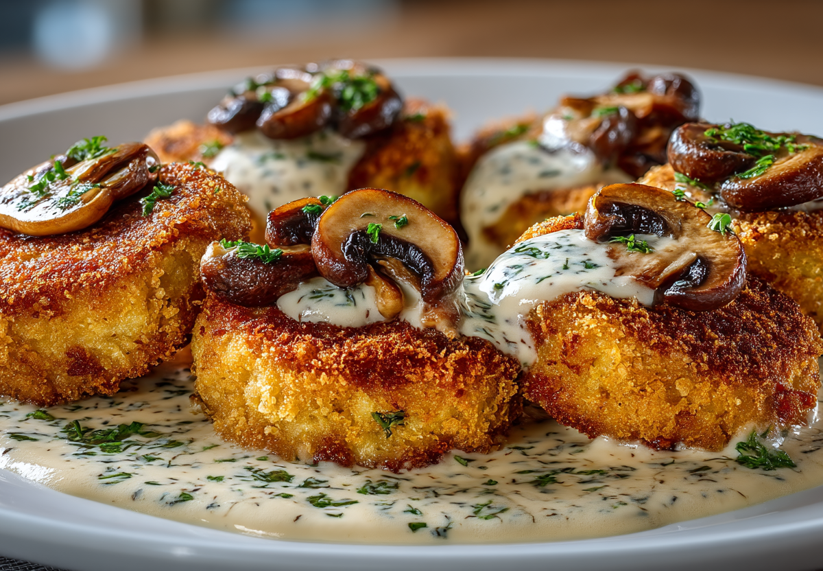Иногда простое блюдо становится событием благодаря детали. Здесь этой деталью выступает грибной соус на ароматном отваре. Он не просто поливается сверху, а вступает в диалог с хрустящими котлетами, предлагая новый уровень домашней кухни.