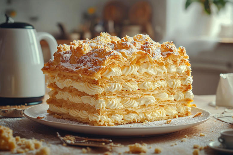 Этот торт из слоеного теста и крема на сгущенке готовить настолько просто, что можно делать его хоть каждый день! Его вкус — это сочетание хрустящего, воздушного слоеного теста с насыщенным карамельно-сливочным кремом.