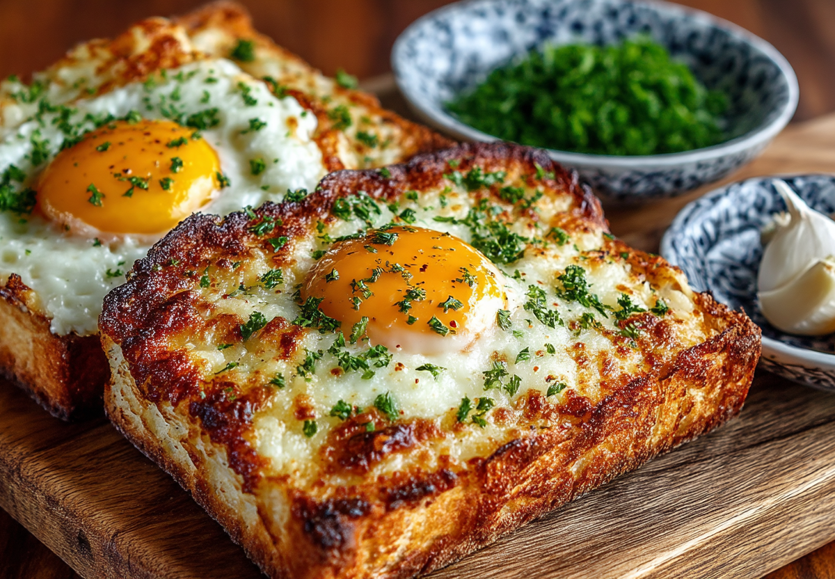 Хрустящие тосты с чесночным маслом и яйцом — это завтрак, перед ароматом и вкусом которого невозможно устоять.