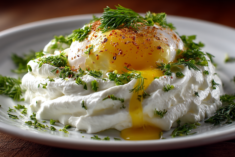 Этот турецкий завтрак — яйцо в греческом йогурте — набирает популярность во всем мире. Попробовав раз, невозможно остановиться его готовить, хочется наслаждаться вновь и вновь.