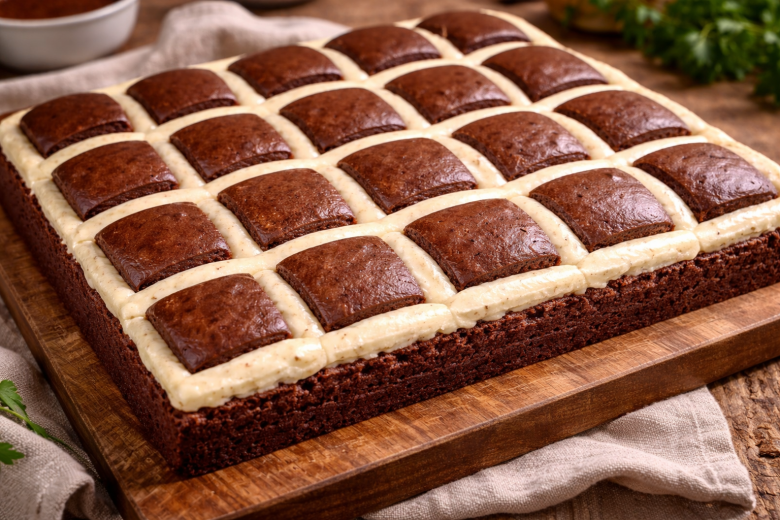 Этот творожный пирог «Одеяло» не только вкусный, но и очень красивый. Шоколадное тесто и нежная творожная начинка образуют сверху рисунок, похожий на мягкое «одеяло». Готовится десерт довольно просто, а благодаря сливочному маслу вкус получается более насыщенным и ароматным.