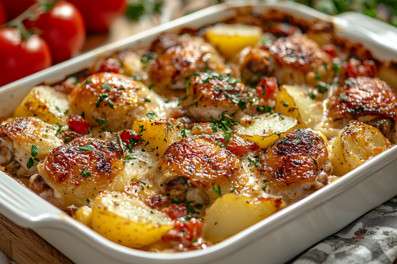Этот рецепт для тех, кто скучает по аромату костра и теплому вечеру на природе, но не имеет возможности устроить пикник. Запеченные в духовке картофель и курица с дымчатыми нотами паприки и ароматом чеснока создают удивительную иллюзию приготовления на открытом огне. А свежий, яркий чесночный соус добавляет сочности и завершает картину. Это простой, но очень эффектный ужин, который наполнит дом потрясающими запахами и подарит ощущение легкой, непринужденной трапезы.