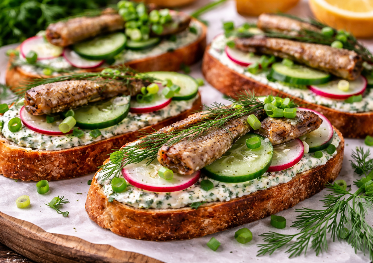 Готовим весенние бутерброды со шпротами. Вместо тяжелых сочетаний здесь много зелени, легкая намазка и хрустящие овощи. Получается ярко, свежо и очень аппетитно — такие бутерброды уходят со стола первыми.