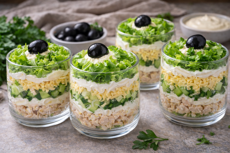 Салат «Воздушный» хорош не только вкусом, но и подачей. Он получается лёгким, свежим и действительно воздушным — без тяжёлых слоёв и плотной текстуры. Отличный вариант для праздничного стола, фуршета или лёгкого ужина, когда хочется чего-то аккуратного и красивого. Минимум ингредиентов, простая сборка и эффектный результат — именно такие рецепты всегда берут на заметку.