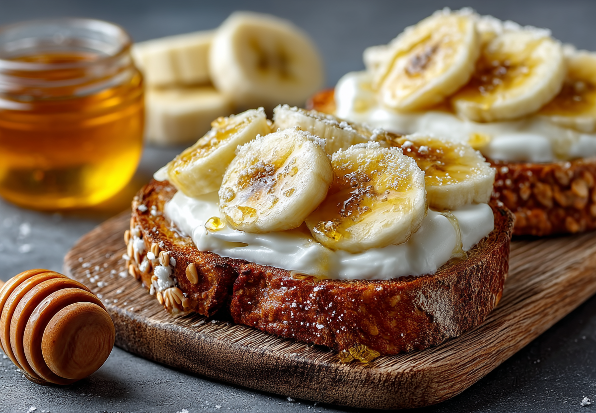 Сладкие запеченные бутерброды с бананом и йогуртом — это идеальный завтрак. Нежный батон, пропитанный йогуртовой смесью, и сочные кусочки банана с хрустящей сахарной корочкой создают десерт, от которого не оторваться.