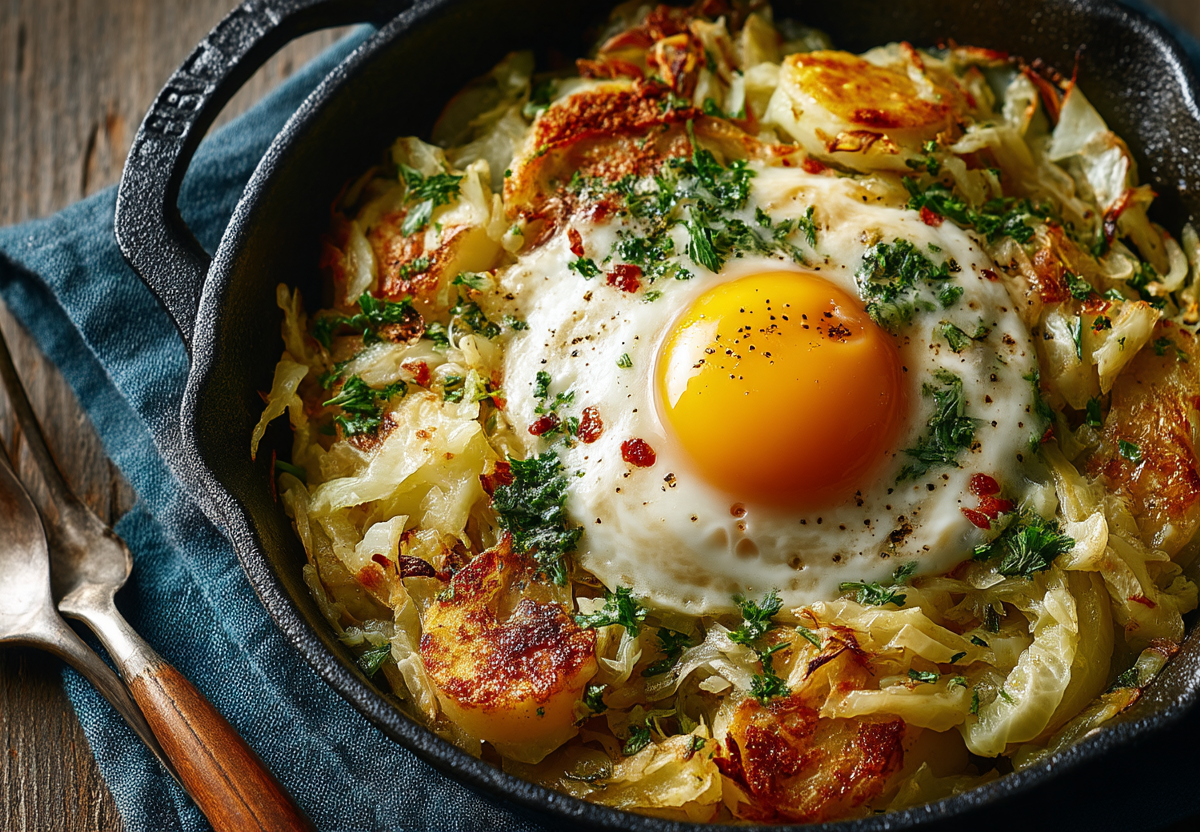 Это рагу — доказательство того, что из самых доступных овощей можно создать настоящее кулинарное чудо. Капуста и картофель, томленные в сливочном соусе с яйцом, превращаются в невероятно сытное, ароматное и самодостаточное блюдо.
