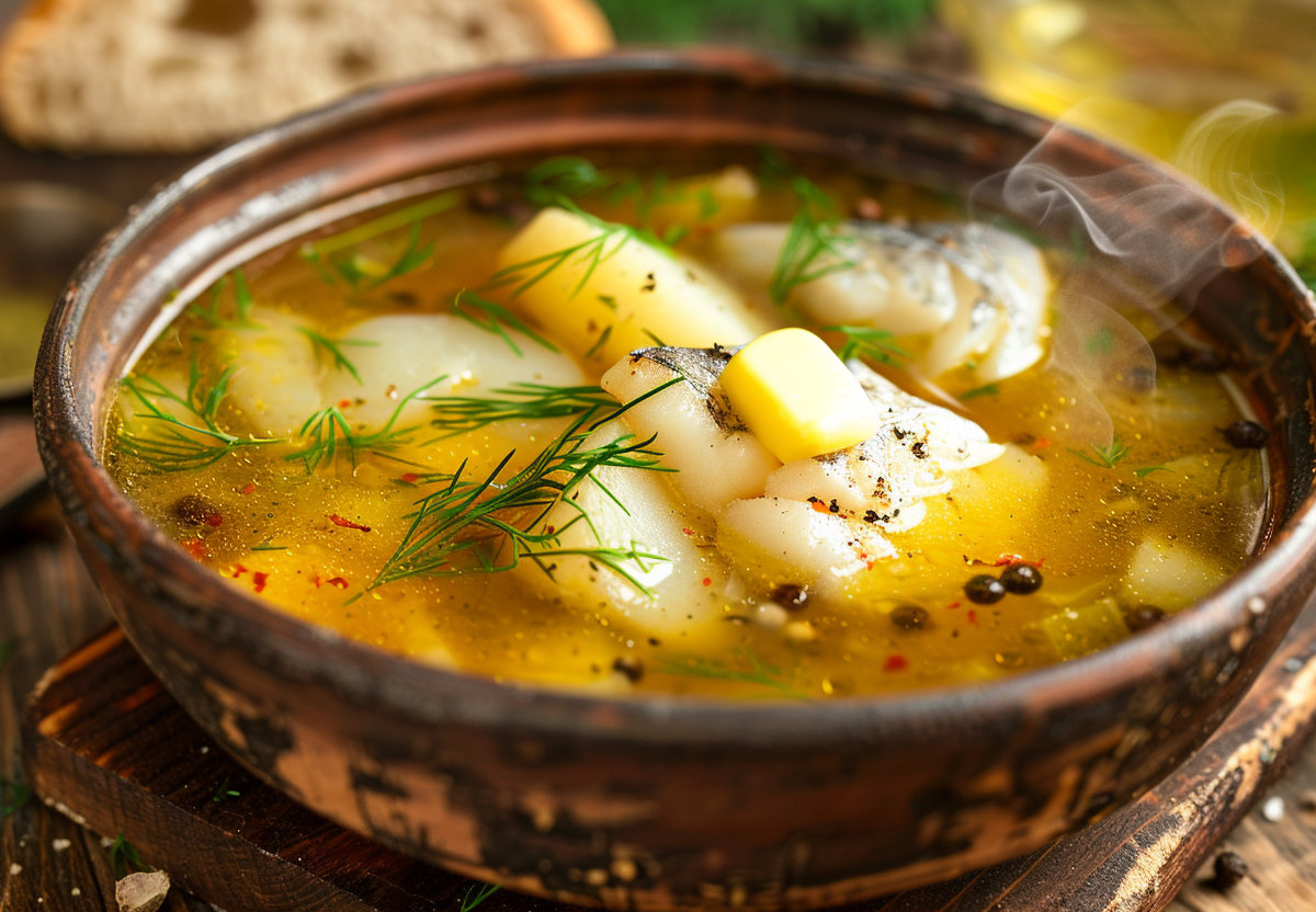 Треску разделайте: кости и голову отправьте вариться — именно они дают крепкий бульон. После закипания снимите пену и томите около 30 минут с перцем и лаврушкой. Процедите бульон и верните на плиту. Добавьте крупно нарезанный картофель и целую луковицу, варите 15 минут. Затем отправьте в кастрюлю куски рыбы, посолите и готовьте еще 10 минут без бурного кипения. В конце положите сливочное масло, накройте крышкой и дайте настояться. Подавайте горячей с укропом и ржаным хлебом — вкус просто бомба!