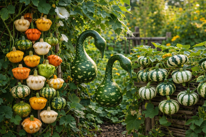 Эти тыквы на участке — настоящий дачный аттракцион. Сначала смеёмся над их формами и «характерами», потом фотографируем, а к осени украшаем дом или беседку. И главное — растут быстро, хлопот почти не требуют.