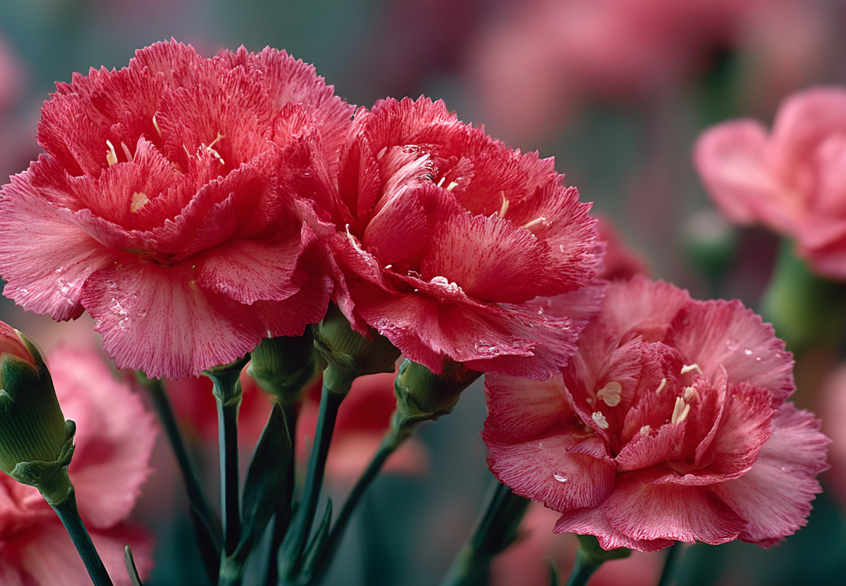 Гвоздика «санфлор ред аллюра» — это многолетник, который поражает своей выносливостью и ярким, продолжительным цветением. Ее компактные кустики высотой 20–30 см покрываются множеством мелких махровых цветков насыщенного розово-красного оттенка, собранных в плотные соцветия. Цветение начинается в июне и продолжается до самых заморозков, особенно если вовремя удалять увядшие бутоны.