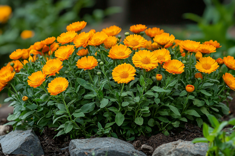 Идеальный выбор для «ленивой» клумбы — календула. Это неприхотливое растение можно посадить, рассыпав семена по грунту в конце апреля или начале мая. Семена хорошо всходят, сеянцы не боятся легких заморозков. К вашему следующему приезду на дачу в июне календула уже раскроет свои яркие оранжевые или желтые «солнышки».