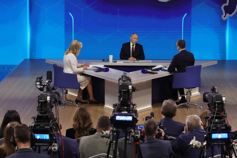 Прямая линия совмещена с пресс-конференцией президента России и проходит в московском Гостином дворе в пятницу, 19 декабря. Здесь собрались представители отечественных и зарубежных СМИ. Всего на линию поступило около 3 млн обращений.
