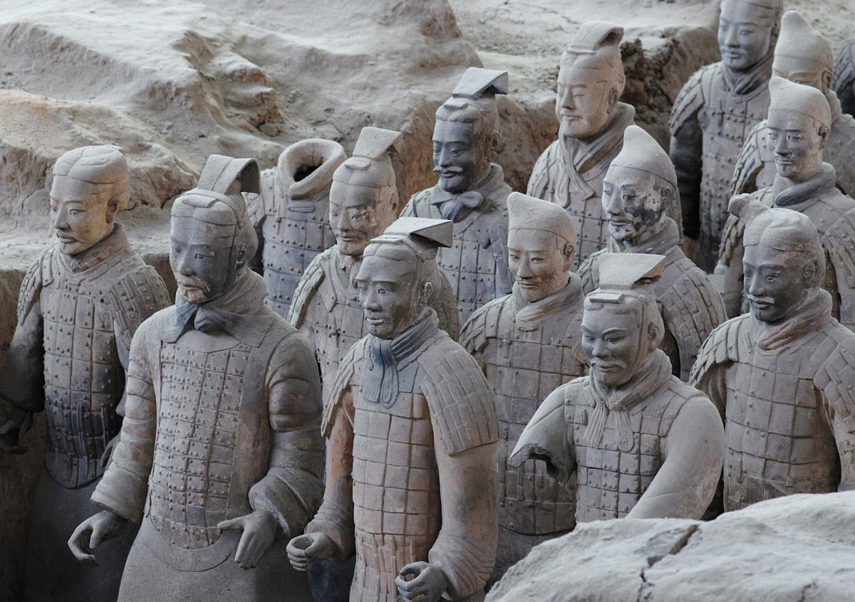Терракотовая армия была открыта в 1974 году и включает несколько тысяч глиняных статуй, датируемых III веком до н. э. Исследования продолжаются, и, по оценкам, может быть около восьми тысяч воинов, которые были созданы для защиты императора в загробной жизни. При этом главный военачальник армии до сих пор не найден.