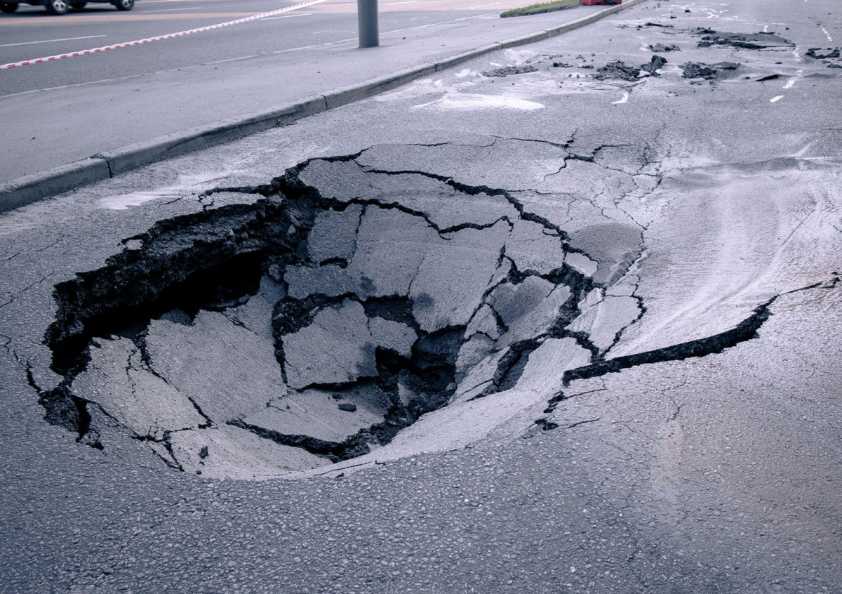 Дорога в Шанхае ушла под землю из-за образовавшейся воронки