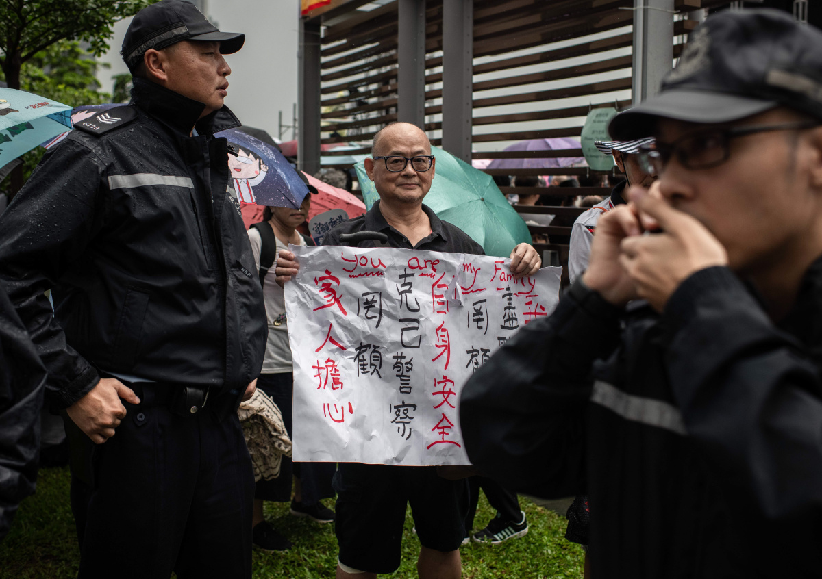 Кроме того, митингующие окружили офис центральных властей КНР. Здание забросали яйцами, разрисовали стены граффити и залили краской камеры видеонаблюдения.