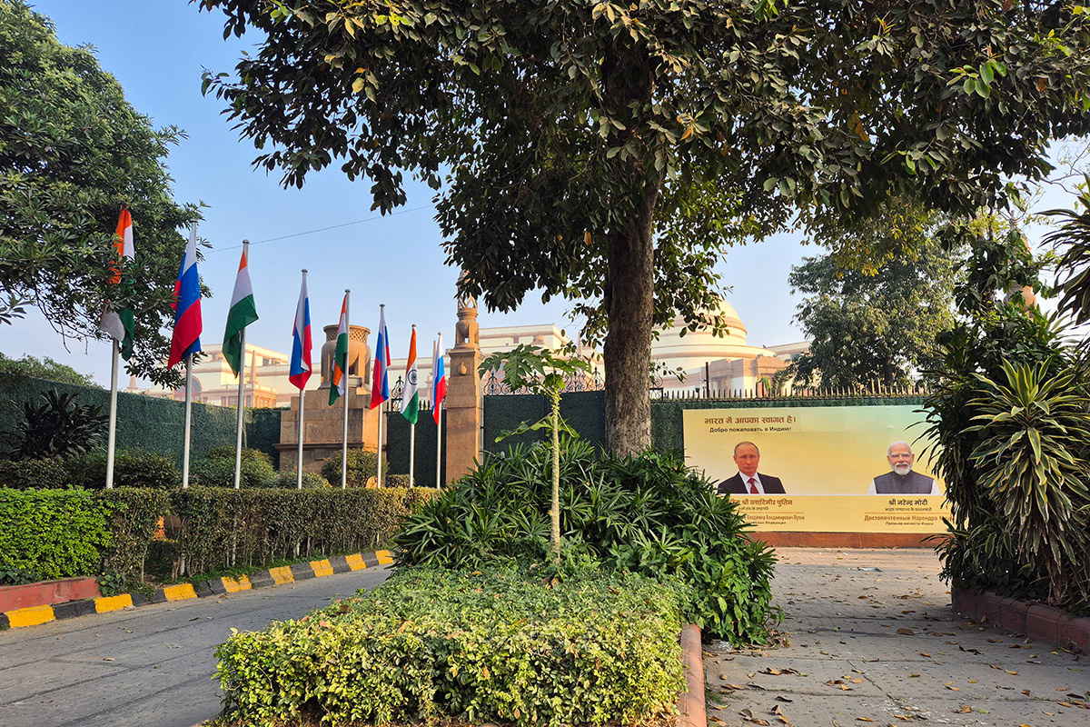 Добро пожаловать в Индию, президент Путин, — гласит надпись на портрете.