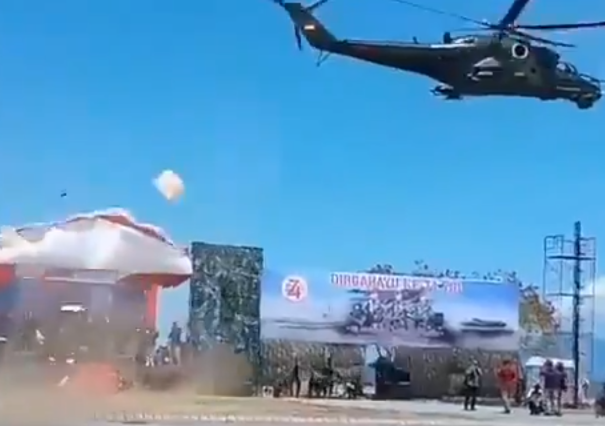 Вертолёт Ми-35П, произведённый в России, снёс трибуны на военном параде в честь 74-летия армии Индонезии.