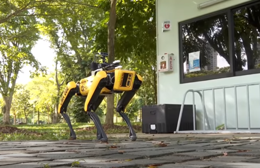 Четвероногий робот вышел на тестовое патрулирование одного из парков Сингапура, где призывает посетителей соблюдать социальную дистанцию в связи с действующими в стране ограничительными мерами на фоне пандемии коронавируса.