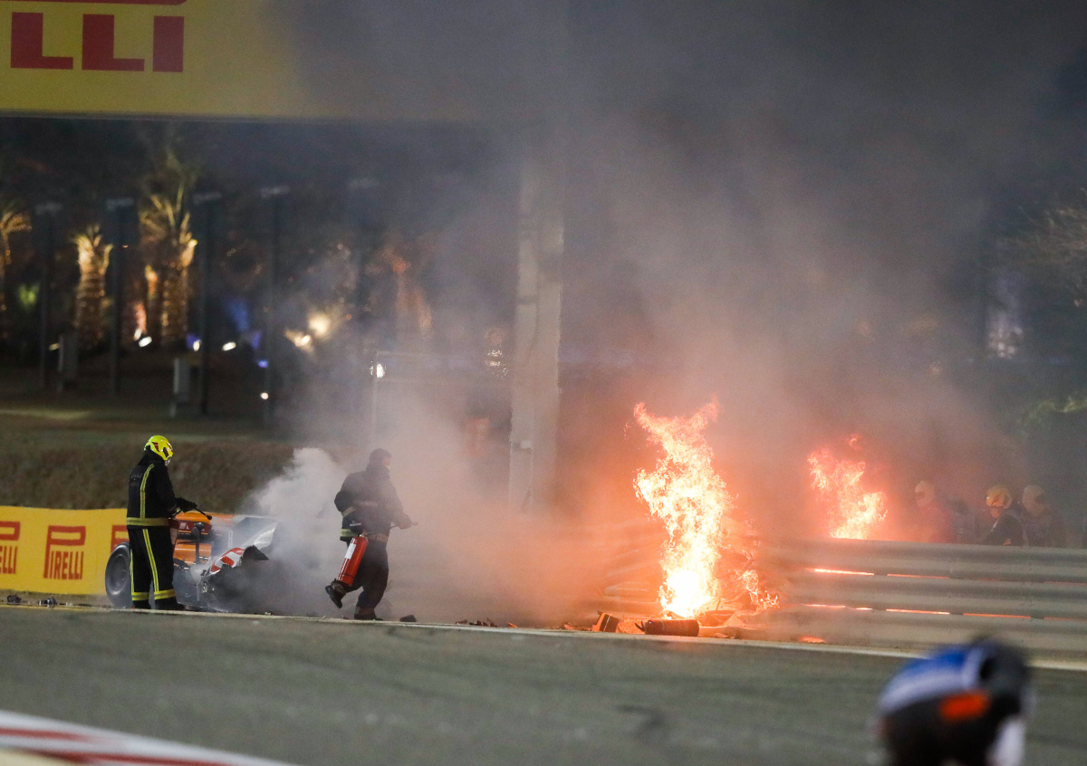 Из-за аварии пилота «Хааса» Ромена Грожана, которая произошла во время Гран-при «Формулы-1», гонку в Бахрейне пришлось приостановить.